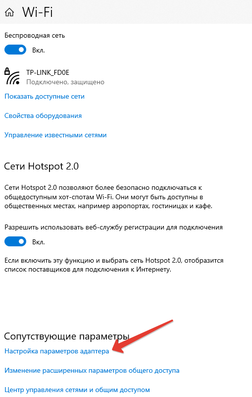 Найдите ссылку «Настройка параметров адаптера» и нажмите на неё. Это откроет панель управления со списком всех сетевых подключений.